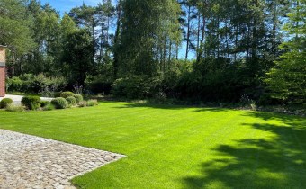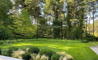 Ogród peÅ‚en wieloletnich nasadzeń zachwyca o każdej porze roku – to wymarzone miejsce na porannÄ… kawÄ™, letnie obiady, zabawy z dziećmi czy wieczorne spotkania przy zewnÄ™trznym kominku.Â