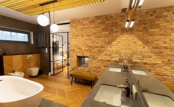 WnÄ™trza urzekajÄ… połączeniem naturalnych materiałów, prostych form i ciepÅ‚ej kolorystyki. Elementy drewniane, ceglane Å›ciany i miÄ™kkie Å›wiatÅ‚o tworzÄ… przytulny stylowy klimat.Â