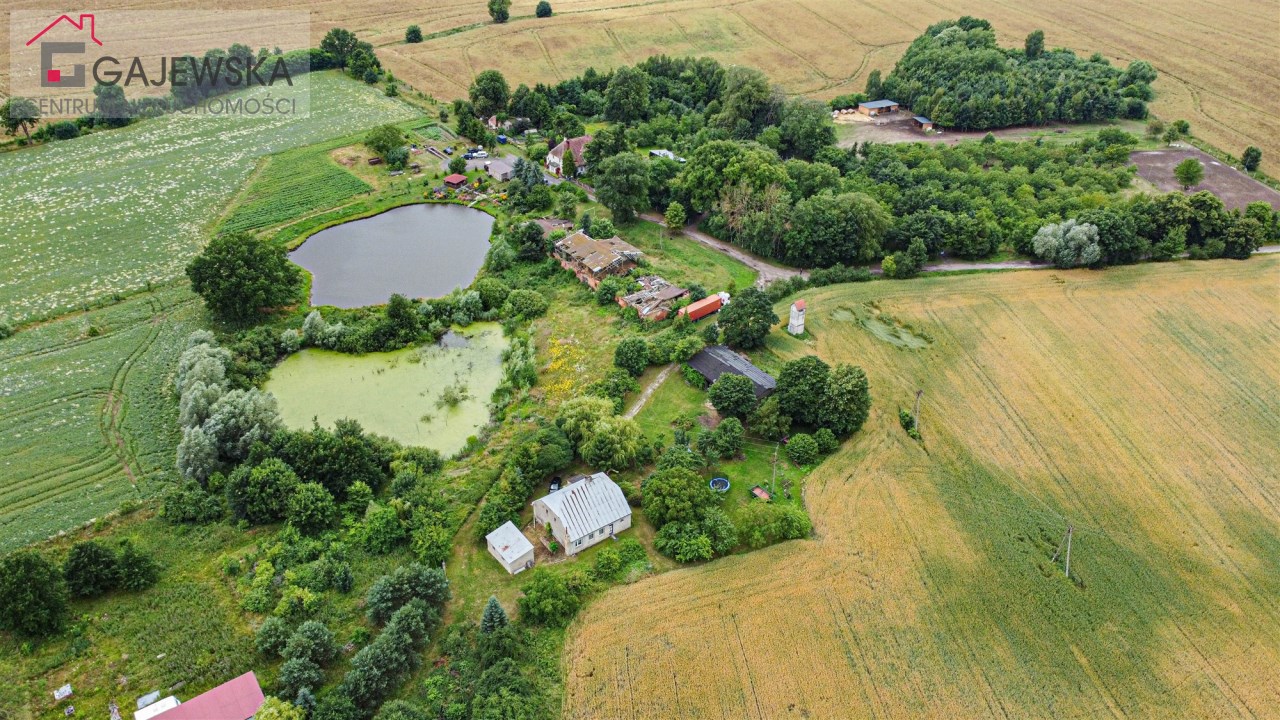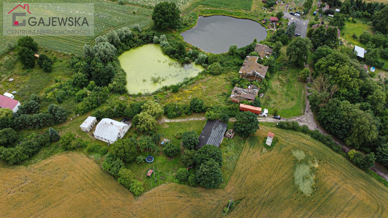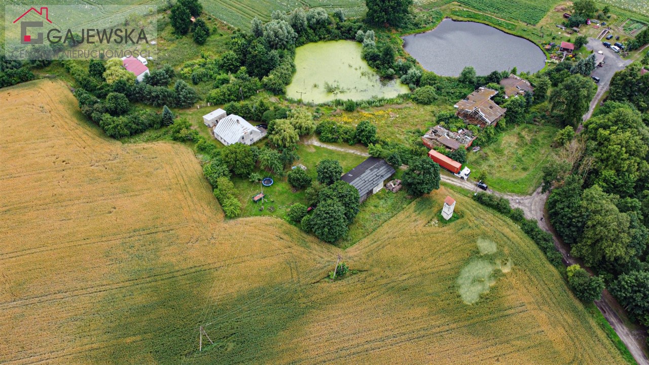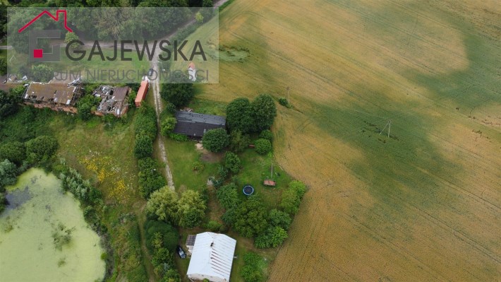 2, murowanym budynkiem gospodarczym oraz stodołą drewnianą.