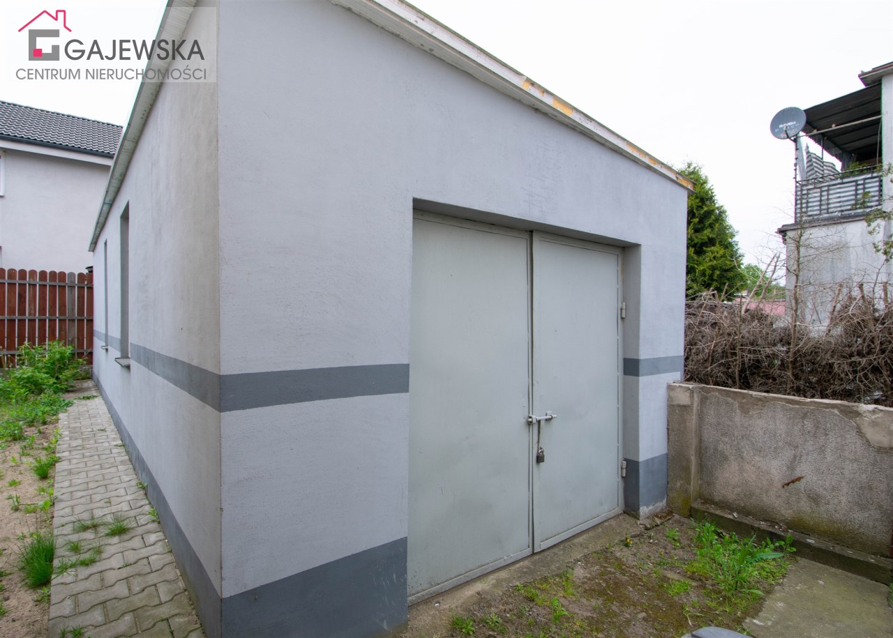 Na działce znajduje się również murowany budynek garażowy, dwustanowiskowy o powierzchni 25 m2.