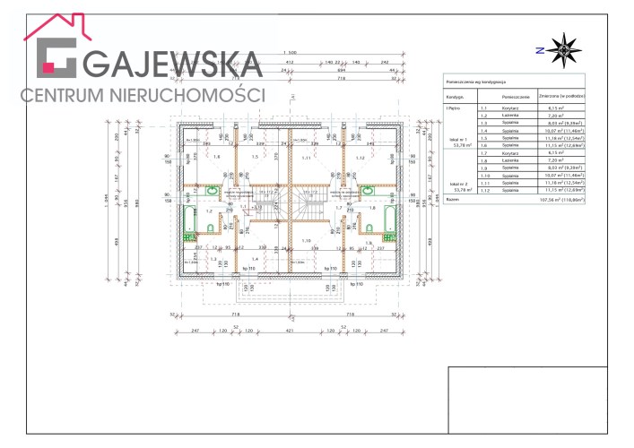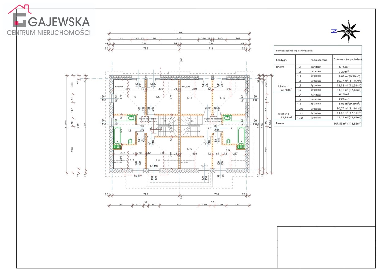 - piętro (mierzone po podłodze) : sypialnia (12,69 m2), sypialnia (12,54 m2), sypialnia(11,46 m2), sypialnia(11,86 m2), łazienka (7,2m2), korytarz (6,15m2)..