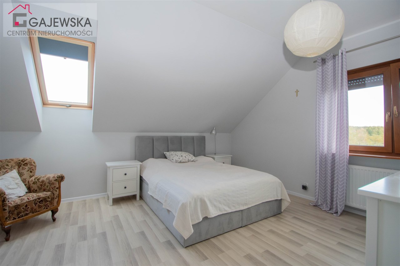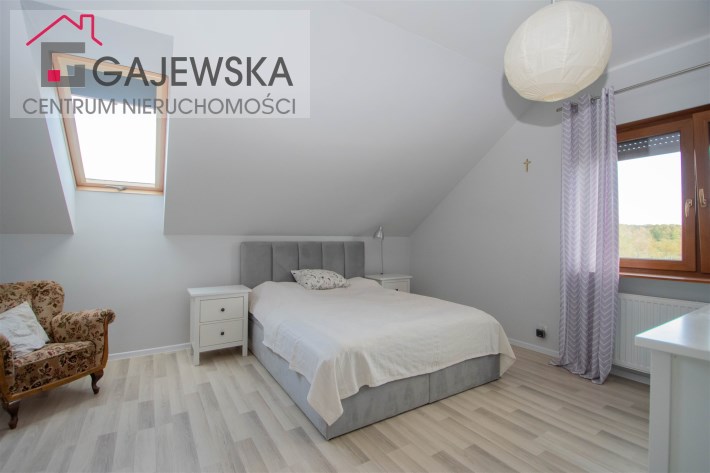 - Sypialnia – 14,20 m²: Przestronna główna sypialnia z widokiem na zielone otoczenie.