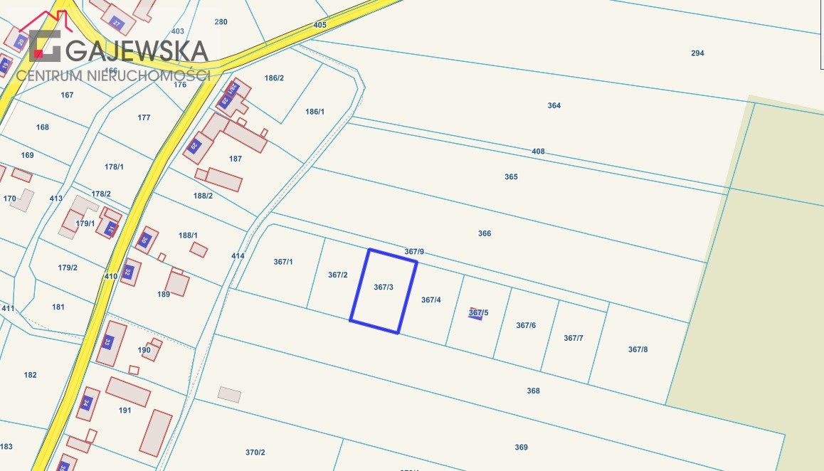 Media: woda z sieci wiejskiej, prąd w ulicy, możliwość instalacji butli z gazem płynnym.