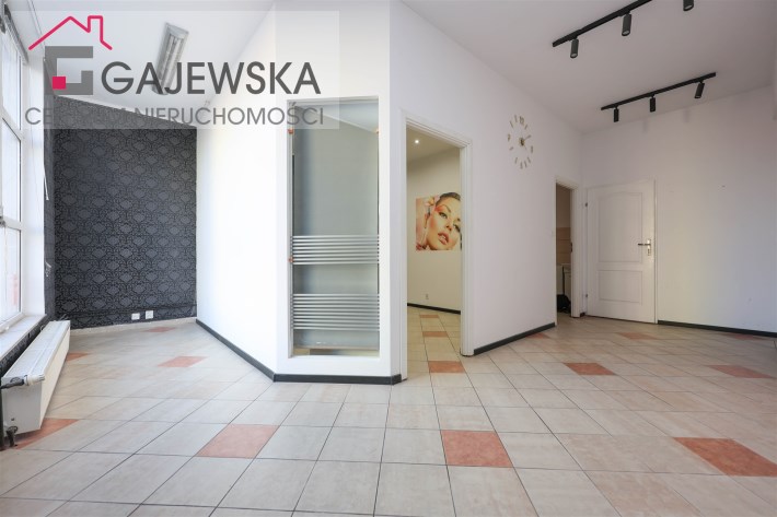 Do wynajęcia lokal handlowo-usługowy o powierzchni 42 m², zlokalizowany na 1. piętrze budynku handlowo-usługowego, w którym funkcjonują już m.in. zakład fryzjerski, krawcowa oraz studia fotograficzne.