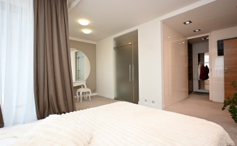Strefa sypialniana została zaprojektowana jak luksusowy apartament hotelowy — zapewniając maksymalny komfort, prywatność i spójność stylistyczną.