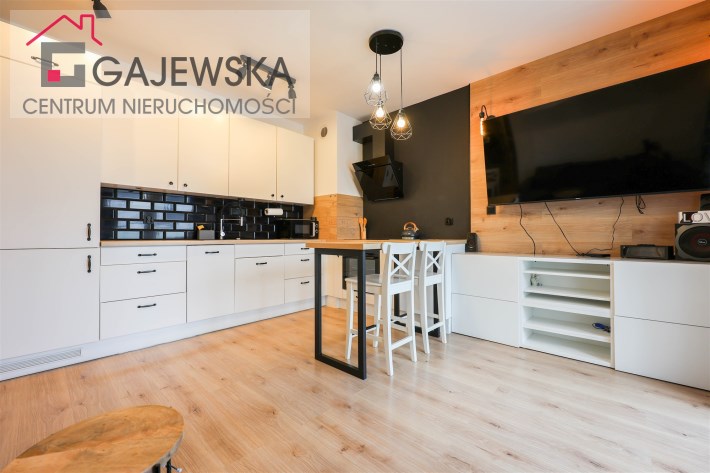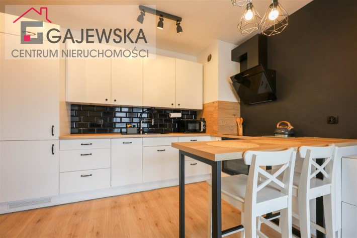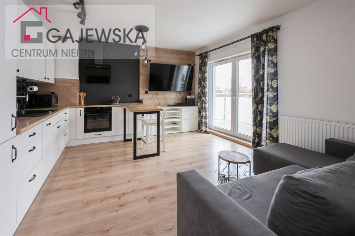 Nieruchomość sprzedawana jest z umeblowaniem, co umożliwia natychmiastowe wprowadzenie się bez konieczności ponoszenia dodatkowych nakładów finansowych. Kuchnia wyposażona w zabudowę kuchenną, sprzęt AGD: zmywarka, płyta indukcyjna, lodówka, okap. W części dziennej narożnik.