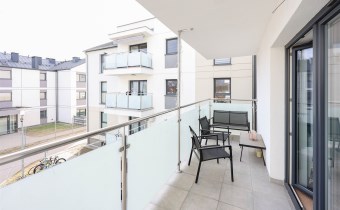 Z salonu prowadzi wyjście na duży balkon, który stanowi doskonałe miejsce do relaksu i odpoczynku. To dodatkowa przestrzeń, która zwiększa komfort mieszkania i pozwala cieszyć się chwilą wytchnienia na świeżym powietrzu.