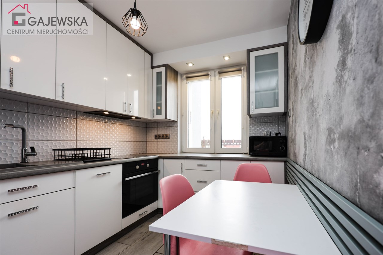 kuchnia z oknem, meblami i sprzętem w zabudowie, wymieniana kilka lat temu, nie generuje to dodatkowych kosztów przy zakupie,