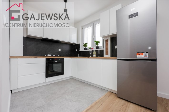 • nowoczesna kuchnia w zabudowie, wyposażona w nowy sprzęt AGD: zmywarkę, piekarnik elektryczny, płytę gazową, okap kuchenny oraz lodówko-zamrażarkę,
