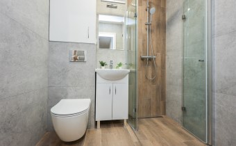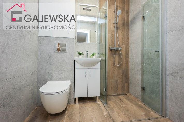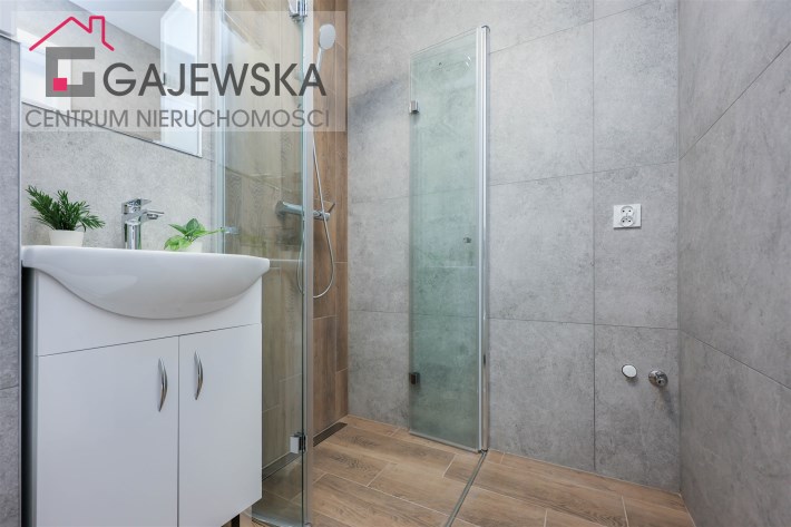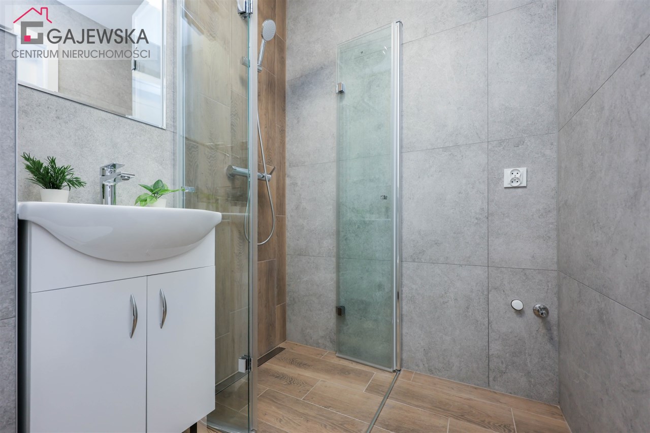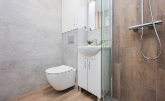 • elegancka, nowoczesna łazienka z glazurą wysokiej jakości oraz kabiną prysznicową z odpływem liniowym,