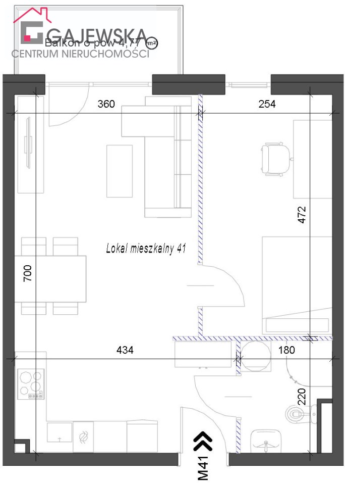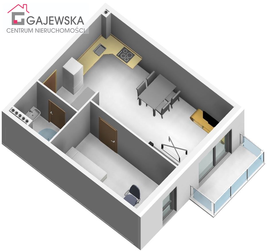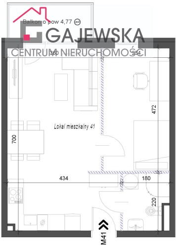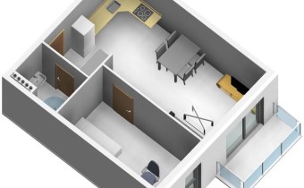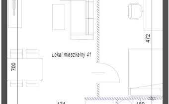 Mieszkanie 2-pokojowe na pierwszym piętrze w nowej inwestycji deweloperskiej w Pile, na osiedlu Lotników II, przy ul. Kołobrzeskiej 10 . Mieszkanie o powierzchni 41,46 m² obejmuje salon z aneksem kuchennym (25,52 m²), pokój (11,98 m²), łazienkę (3,96 m²).