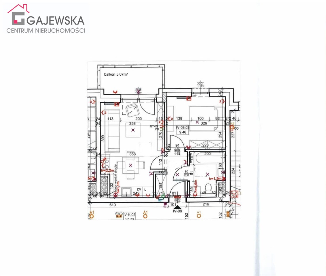 - sypialnia o powierzchni 9,46 m2;