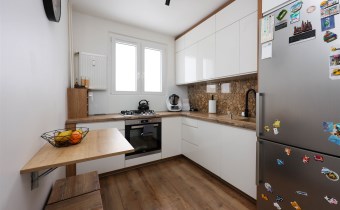 - przestronna kuchnia o powierzchni 7,10 m2 wyposażona w piekarnik, płytę gazową, meble kuchenne na wymiar oraz zmywarkę.