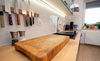 Wyposażenie kuchni szafki kuchenne, piekarnik elektryczny, lodówko/zamrażarka, kuchenka elektryczna