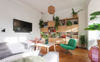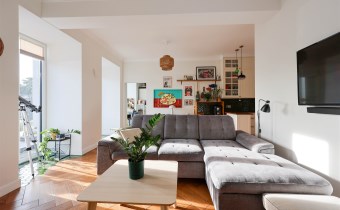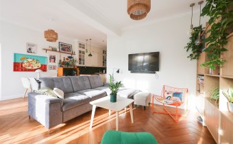 Przestronny i pełen światła, połączony z jadalnią oraz kuchnią.