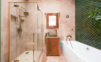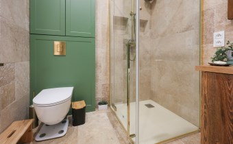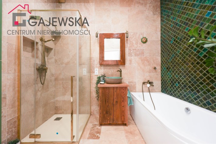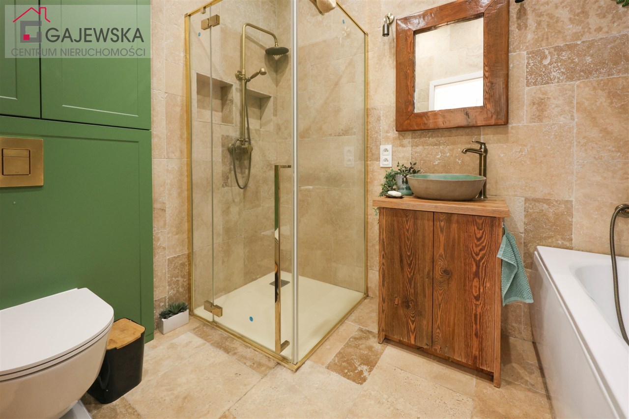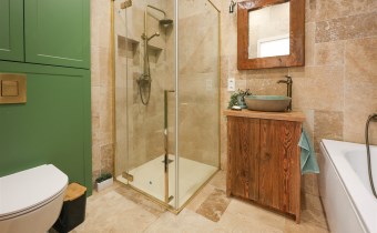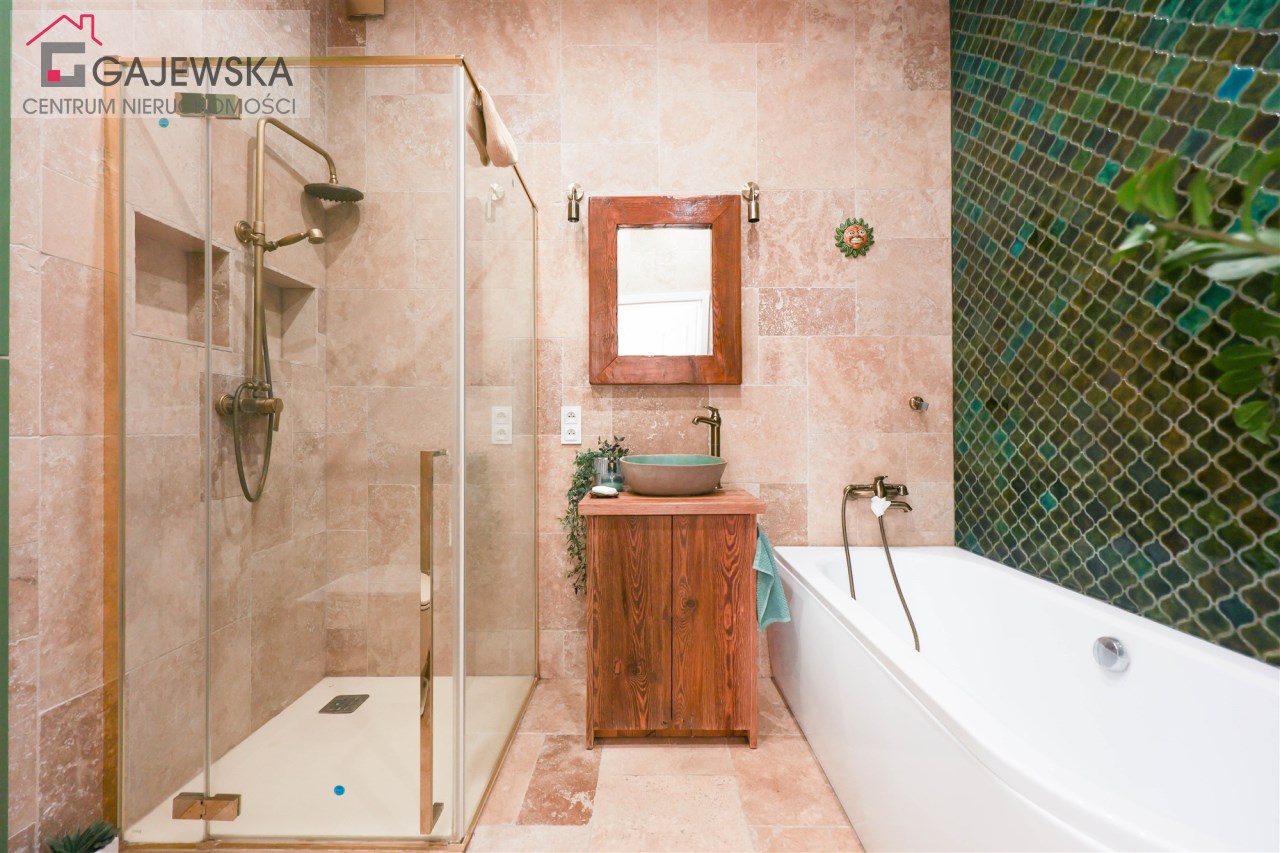 Stylowa i nietuzinkowa – znajdziesz tu zarówno wannę jak i prysznic, co zapewnia pełną wygodę.