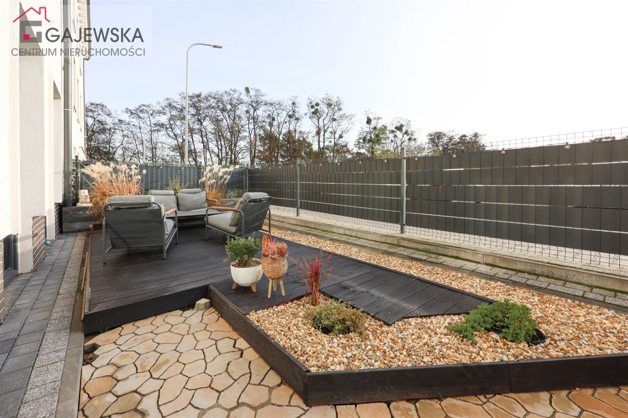 Ogródek, który zapewnia prywatną przestrzeń relaksu.