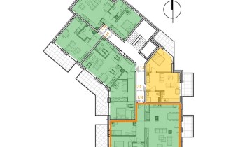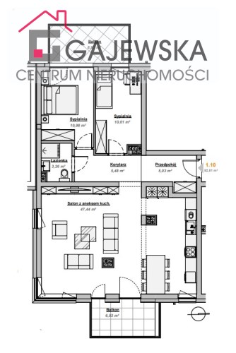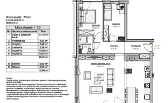 salonu z aneksem kuchennym, 3 sypialni, łazienki oraz przedpokoju.