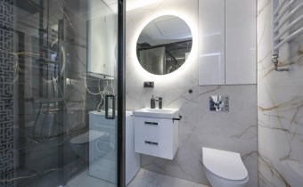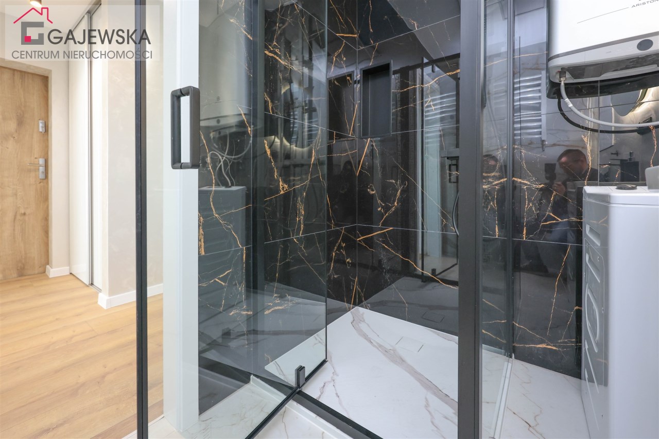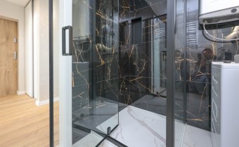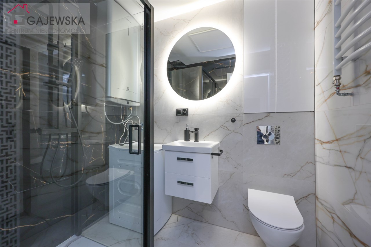 - łazienka o powierzchni 3,25m2 wyposażona w toaletę, umywalkę z lustrem, kabinę prysznicową, pralkę