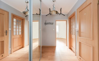 przedpokój o powierzchni 4,55 m² z pojemną lustrzaną szafą w zabudowie.