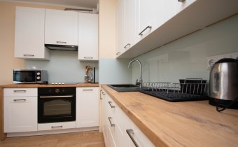 - kuchnia wyposażona w nowoczesną zabudowę, okap, piekarnik, płytę indukcyjną, lodówko- zamrażarkę.
