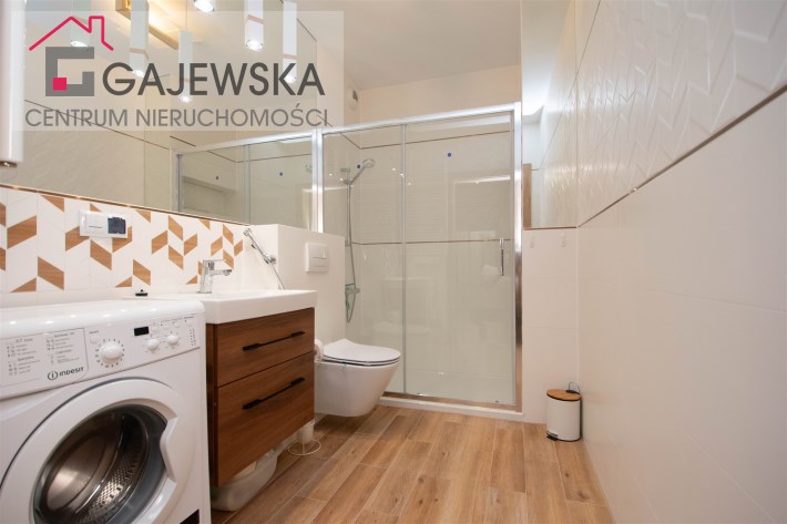 - łazienka z wc o pow. 5,14 m 2 , została wykończona w nowoczesnym stylu, z wysokiej jakości armaturą, co zapewnia komfort codziennego użytkowania. Na wyposażeniu pralka.